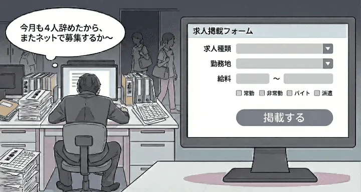 人手不足を解消するには「ネット求人で大量募集を繰り返す」しかありません。